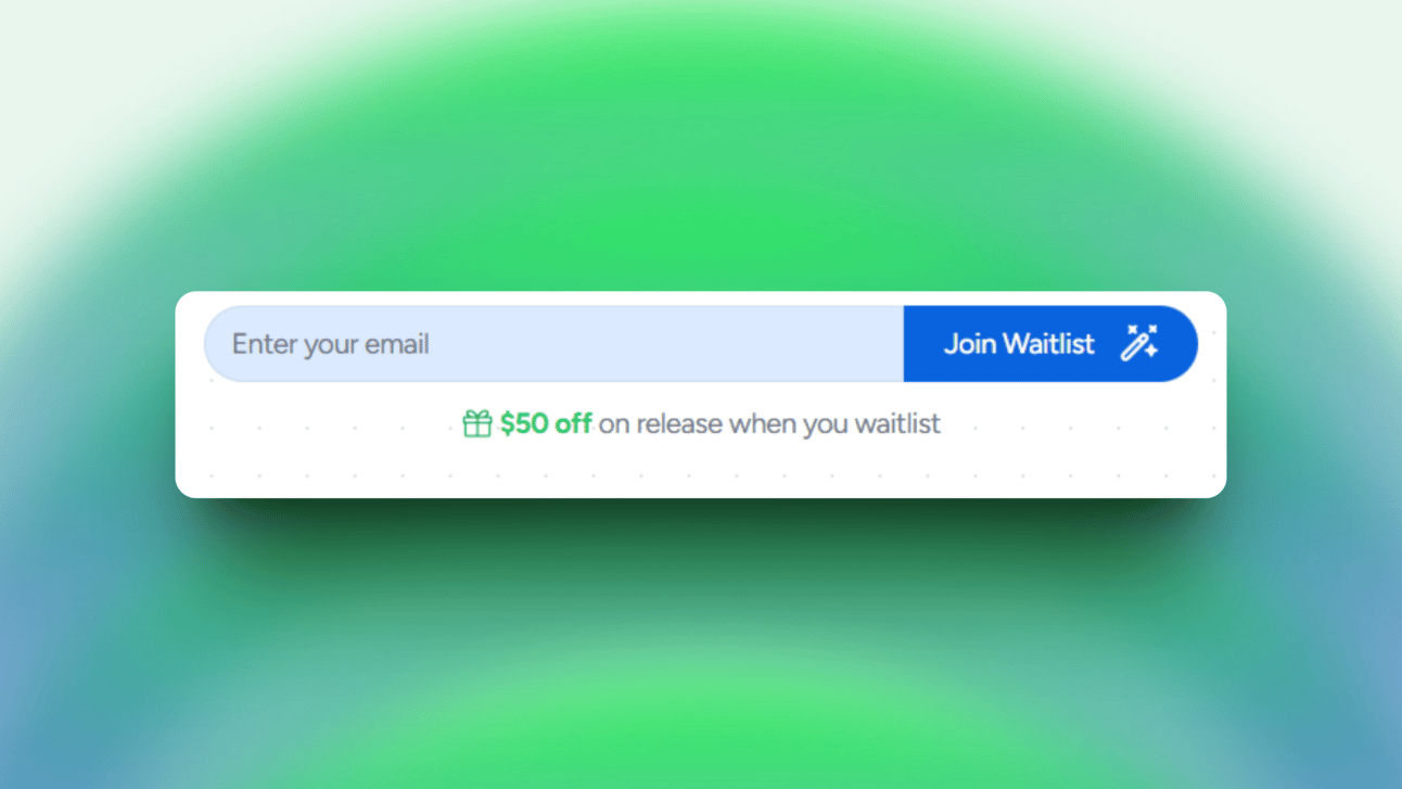 Example of a waitlist on a landing page (With an incentivized discount)